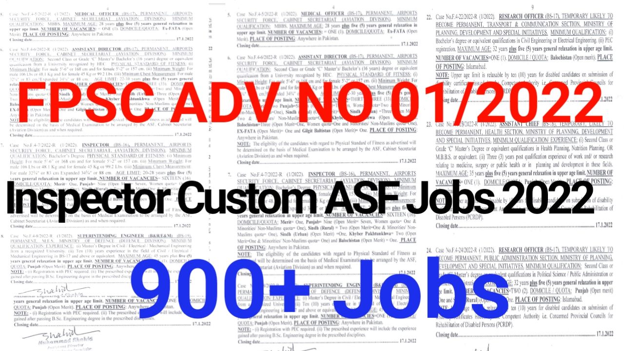 900+ Jobs FPSC consolidated Advertisment No 01/2022|FPSC Jobs 2022